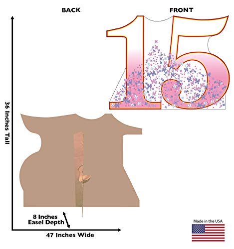 Details: Number 15 Stand up Photo Prop - 36" x 47" Full Color Life-size Cardboard Standee. The product folds down for easy storage. It comes with an easel attached to the back to make it free standing.