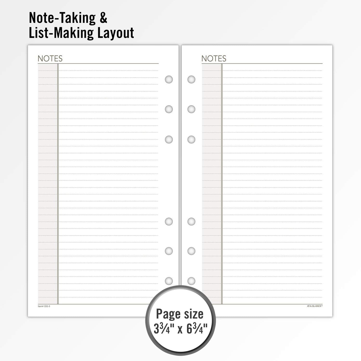AT-A-GLANCE Day Runner Lined NotePad Pages, Refill, Loose-Leaf, Undated, for Planner, 3-3/4" x 6-3/4", Size 3, 30 Sheets/Pack (033-3)