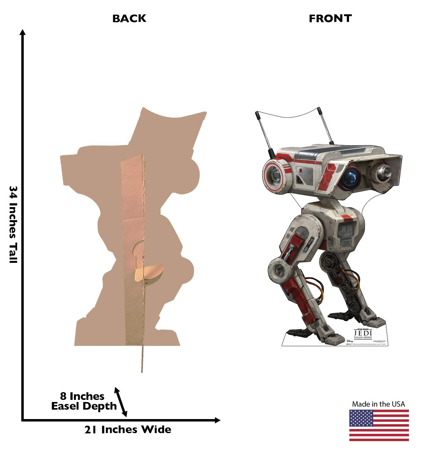 - Cardboard Standee Details: Standing size is 21"W x 34"H. Cardboard cutouts are shipped flat and come with pre-scored lines and fold-out flaps, making assembly easy and quick.