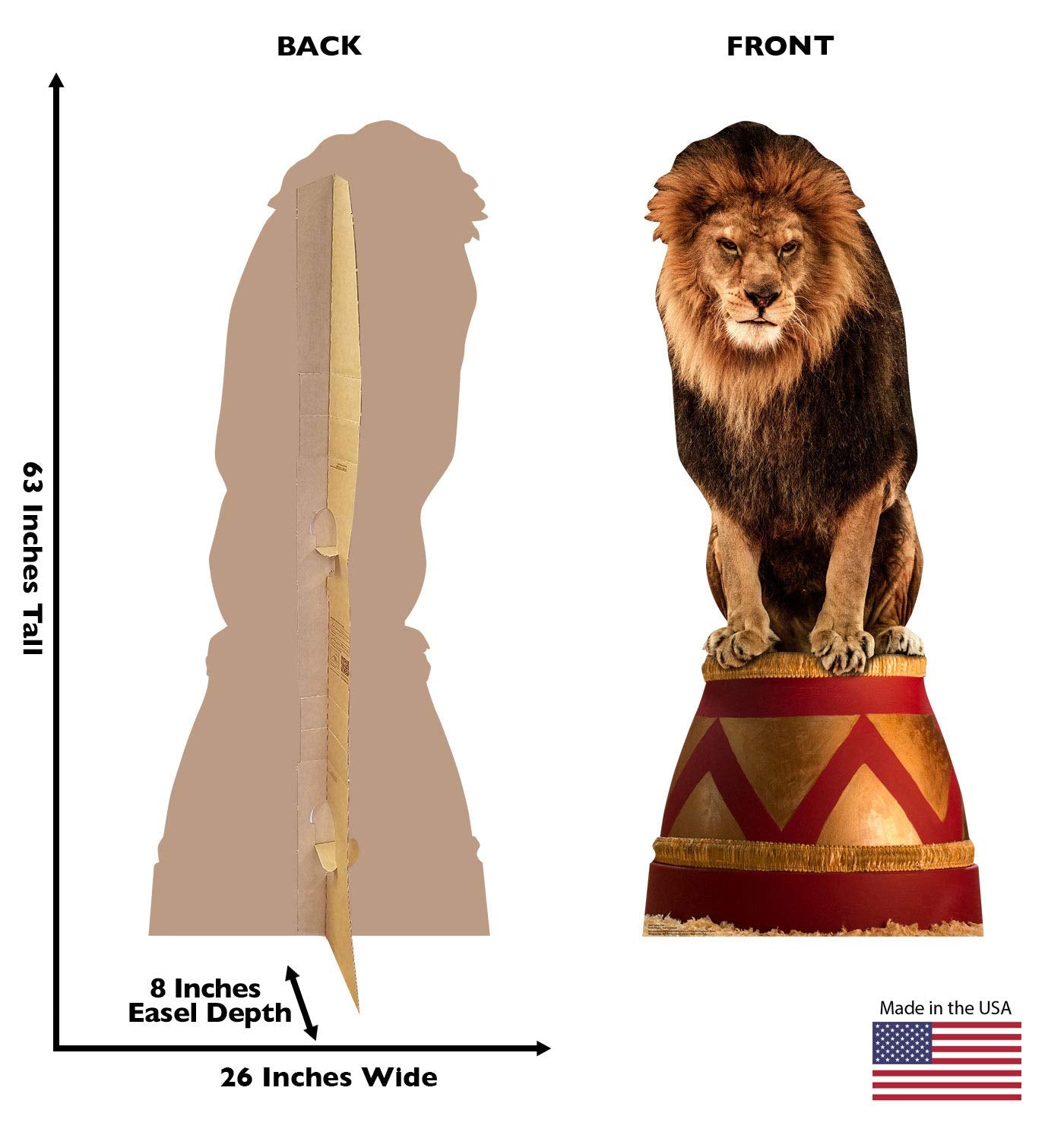 - Cardboard Standee Details: Standing size is 26"W x 63"H. Cardboard cutouts are shipped flat and come with pre-scored lines and fold-out flaps, making assembly easy and quick.