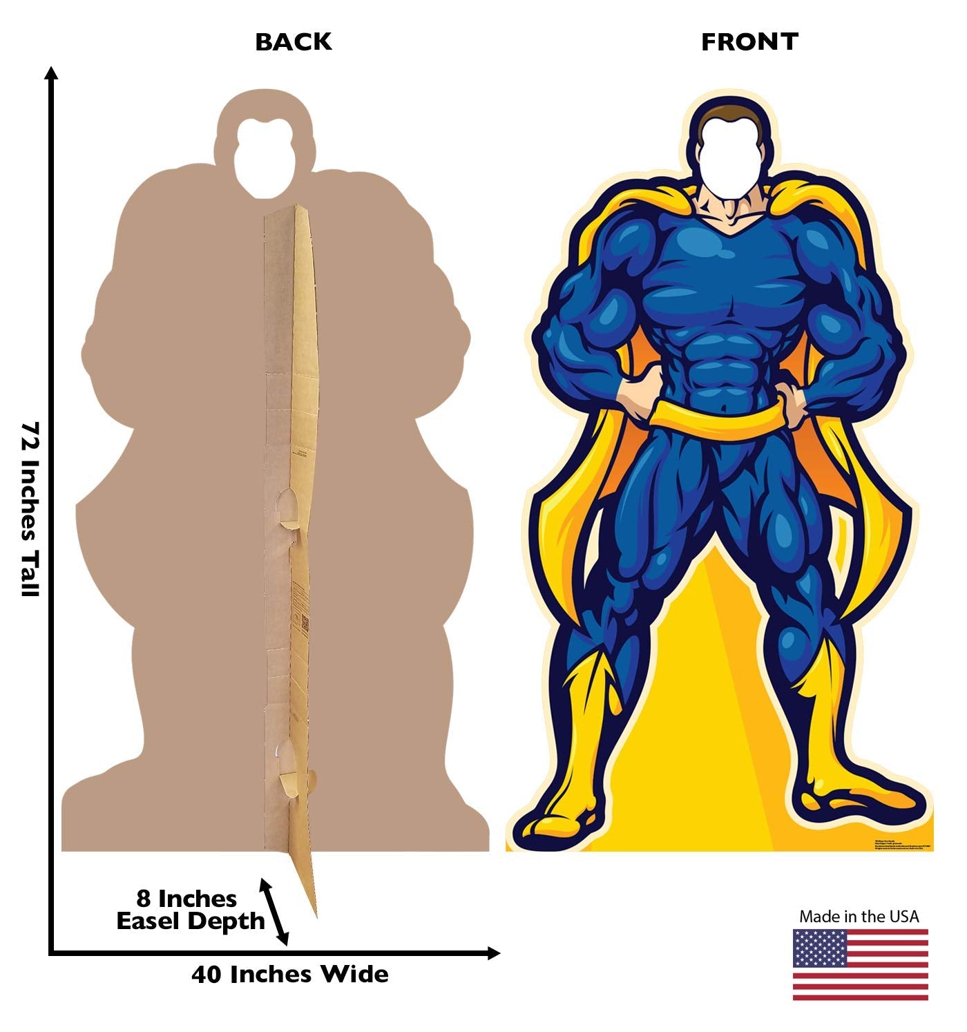 - Cardboard Standee Details: Standing size is 40"W x 72"H. Cardboard cutouts are shipped flat and come with pre-scored lines and fold-out flaps, making assembly easy and quick.