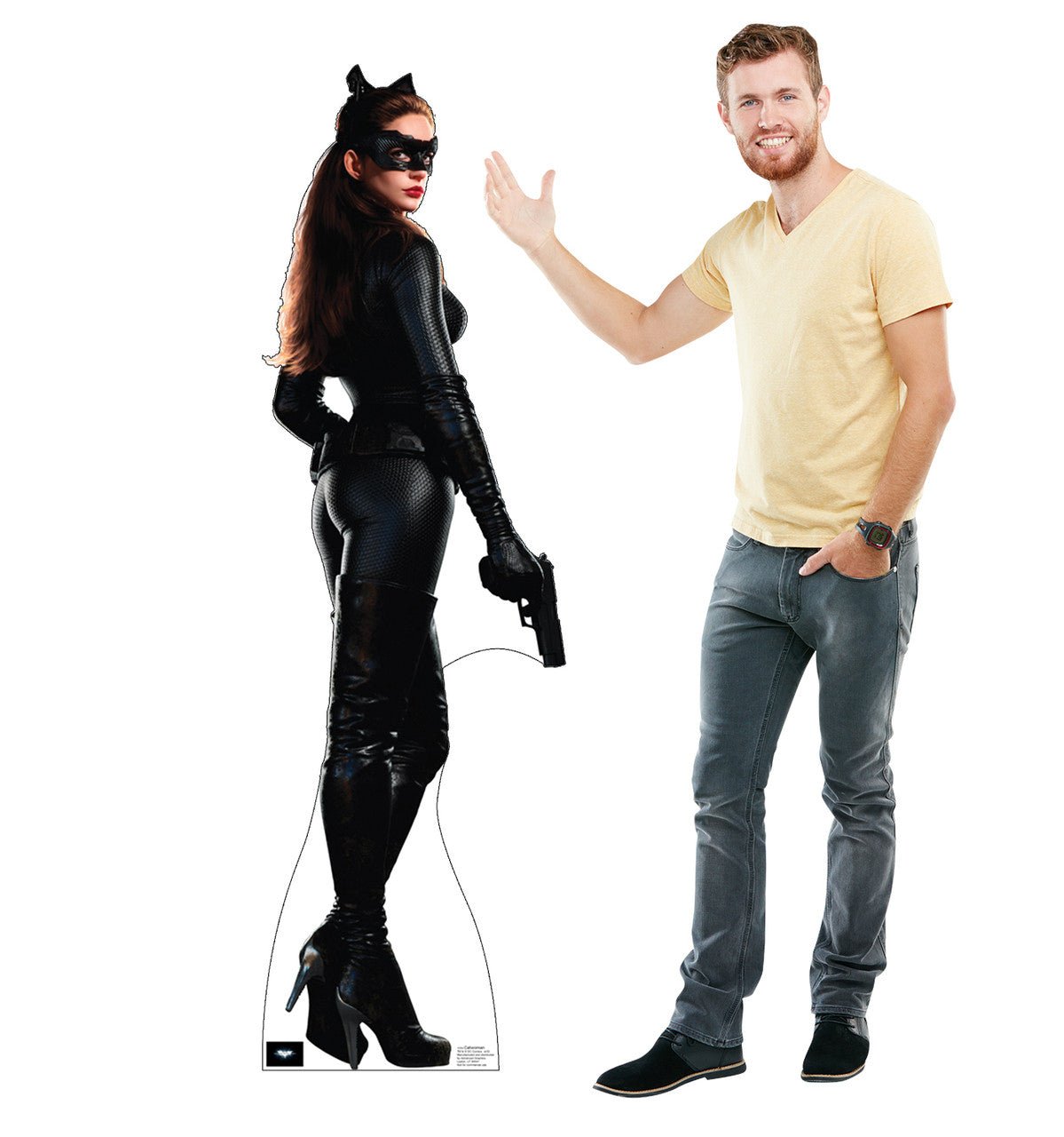 Description: This life-size cardboard cutout of Catwoman from the movie The Dark Knight Rises stands at a size of 69"x 21". Catwoman is associated with DC Comics. She has a cat-like agility and powers. Catwoman apppears in many different Batman comics and movies and other DC comic books, also. Catwoman is a very popular comic book character and would be a very fun standup! Purchase your Catwoman now! Sku # 1259