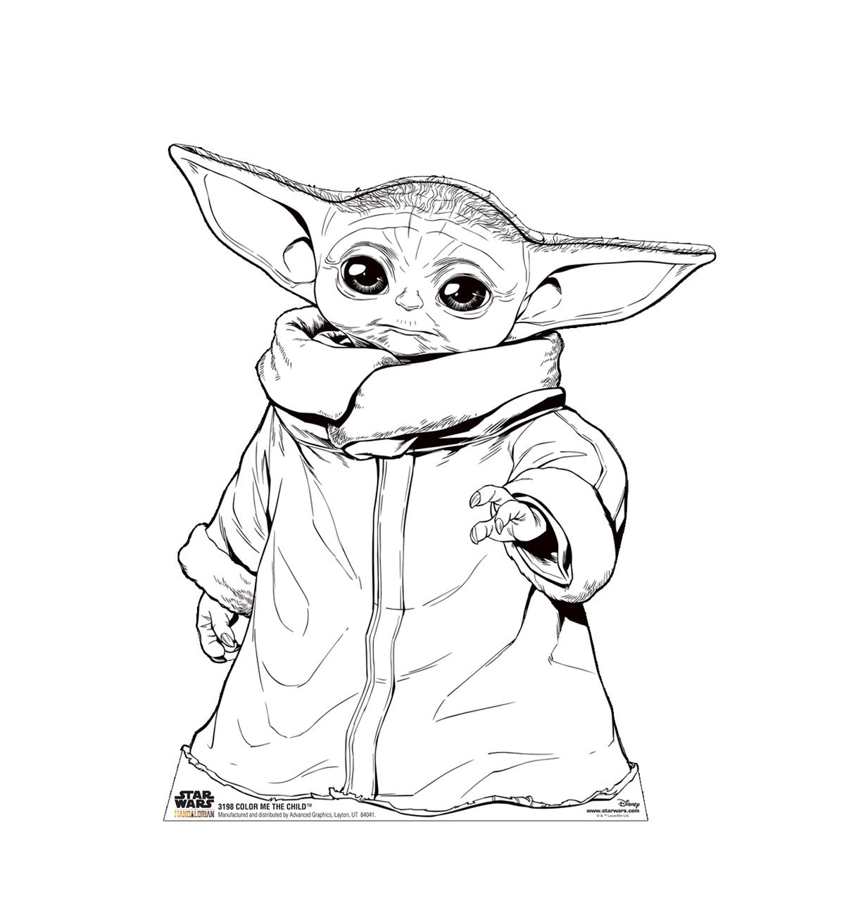 Description: Help spark your child's imagination and creativity with this fun cardboard color me standup of The CHILD from The Mandalorian! Use your own markers, crayons or paints to color and decorate it however you like. Perfect for entertaining kids. This product features a high quality black/white print on cardboard that you can color at home. Let the fun begin!