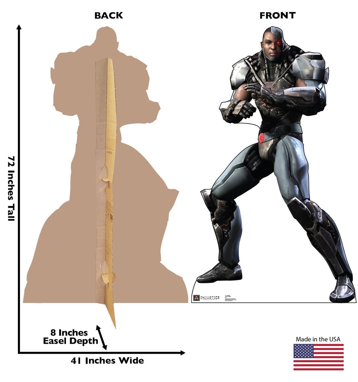 Description: This cardboard cutout of Cyborg is from the fighting video game, Injustice: Gods Among Us. The game features characters from the fictional DC Comic Universe and answers every fans What If questions pairing Superheroes and Villains that would normally not interact against each other to see who is the strongest. Who will you bet on? Order your favorite today! Size 41" x 72" SKU 1681