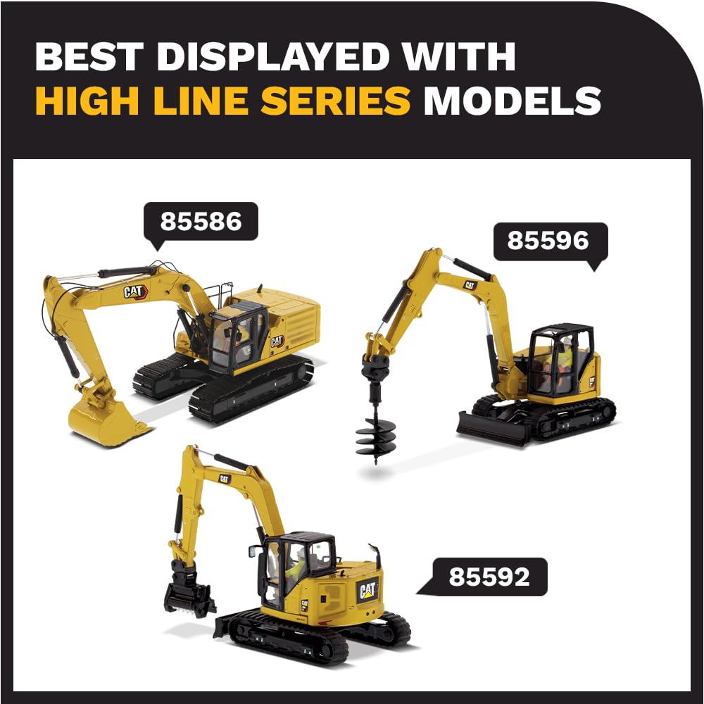 Diecast Masters is proud to introduce detailed replicas of three mini excavators. The next generation 301.7 CR , 308 CR and 309 CR. These next generation excavators feature sealed and air conditioned cabs with next-gen LCD monitors and Cat stick steer technology. All models feature fuel saving load sensing hydraulics with quick-disconnect lines that provide for multiple applications in many environments. A large front window and expansive glass areas on the sides and rear of the cab provide all-around visibility.