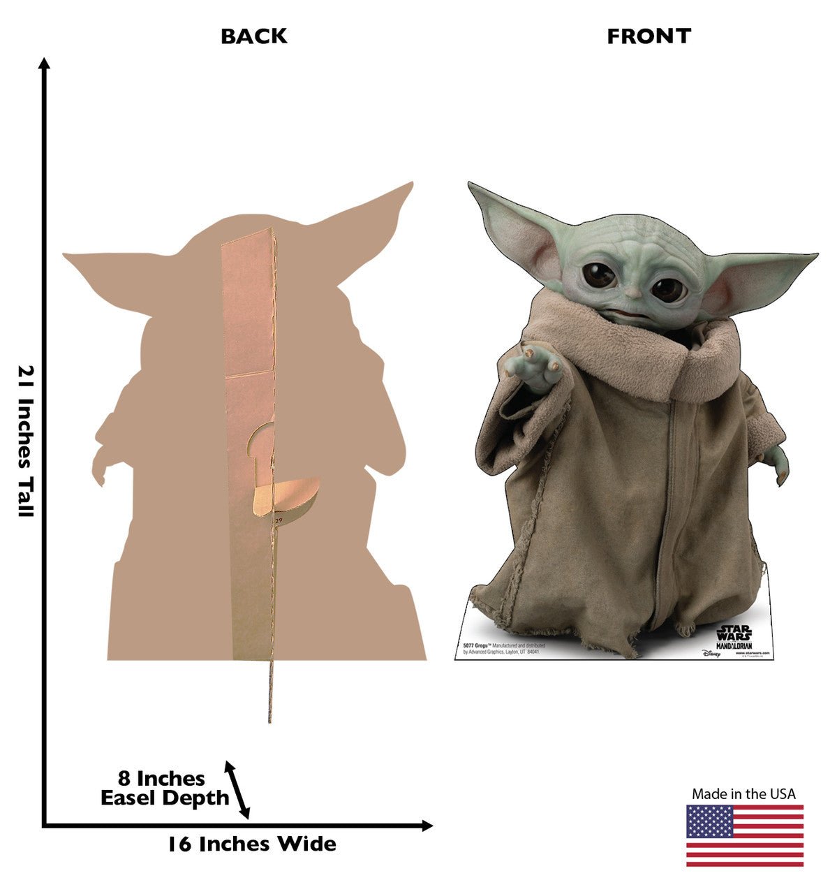 Description: Life-size cardboard standee of the character GroguTM (Baby Yoda) from The Mandalorian Season 3 on Disney+. Collect yours today. Great for photo ops and parties.