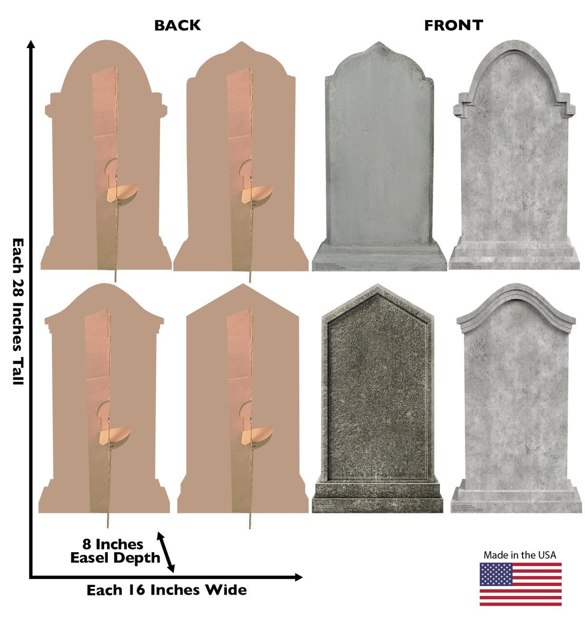 Description: This cardboard cutout of Headstone Write your Own Message in a Set of 4 is perfect for Halloween and spooky events! If you are looking to give your friends and family a good scare, then this is definitely the product for you. Easy to set up, it features a single-sided, high-quality print on cardboard with an easel on the back so that it can stand on its own. Cardboard stand-ups make great decor for parties, photo ops, and events. Order yours today!