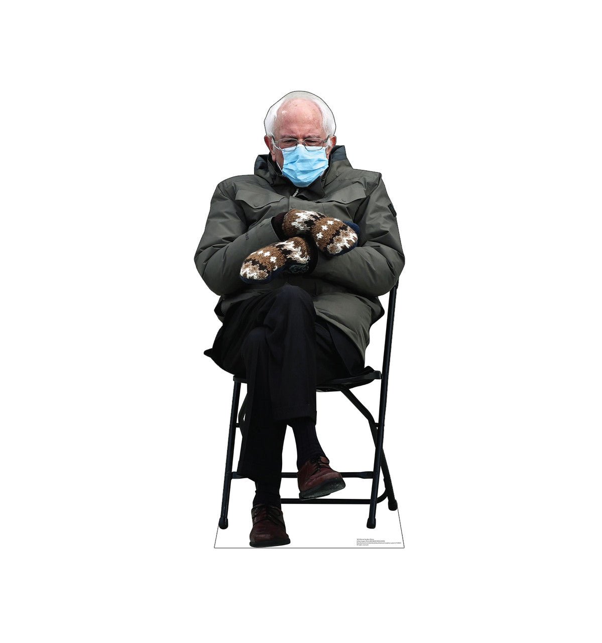 Description: This is a life-size coroplast cutout of Bernie Sanders with Mittens. Senator Sanders made an unintentional fashion statement when he attended President Joe Biden's inauguration in January 2021, looking the coziest he has ever been in his handmade Vermont mittens, face mask and parka coat. Overnight the internet was swarmed with hilarious internet memes featuring the man, the myth, the mittens. This life-size high-quality print on Coroplast (a weather-resistant corrugated plastic) with an easel on the back so it can stand on its own and a yard stake that you can use to help anchor in place. Yard stakes are designed to be used on grass or soft soil. What a great way to make a BIG statement outside your home or business! *Stakes may be sharp please exercise caution when assembling. Not designed for use in extreme wind or weather conditions.