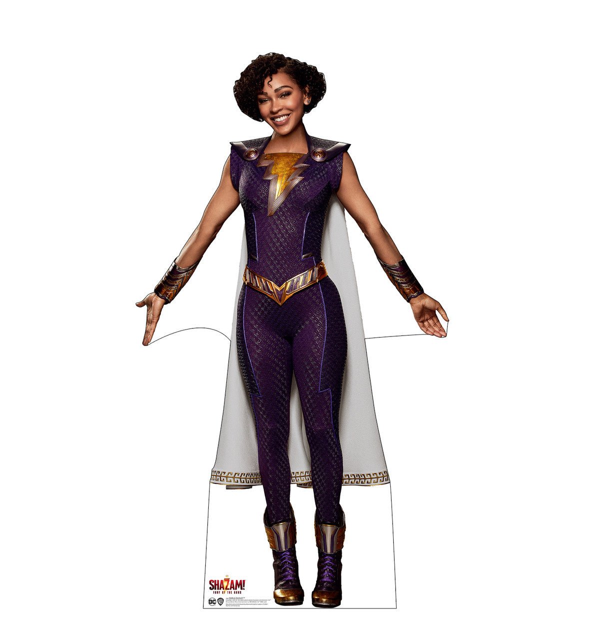 Description: This is a life size cardboard cutout of Darla Dudley from Warner Brothers Shazam! Fury of the Gods movie. Easy to set up, it features a single-sided high quality print on cardboard with an easel on the back so it can stand on its own. Cardboard standups make great decor for parties, photo ops and events! Order yours today!