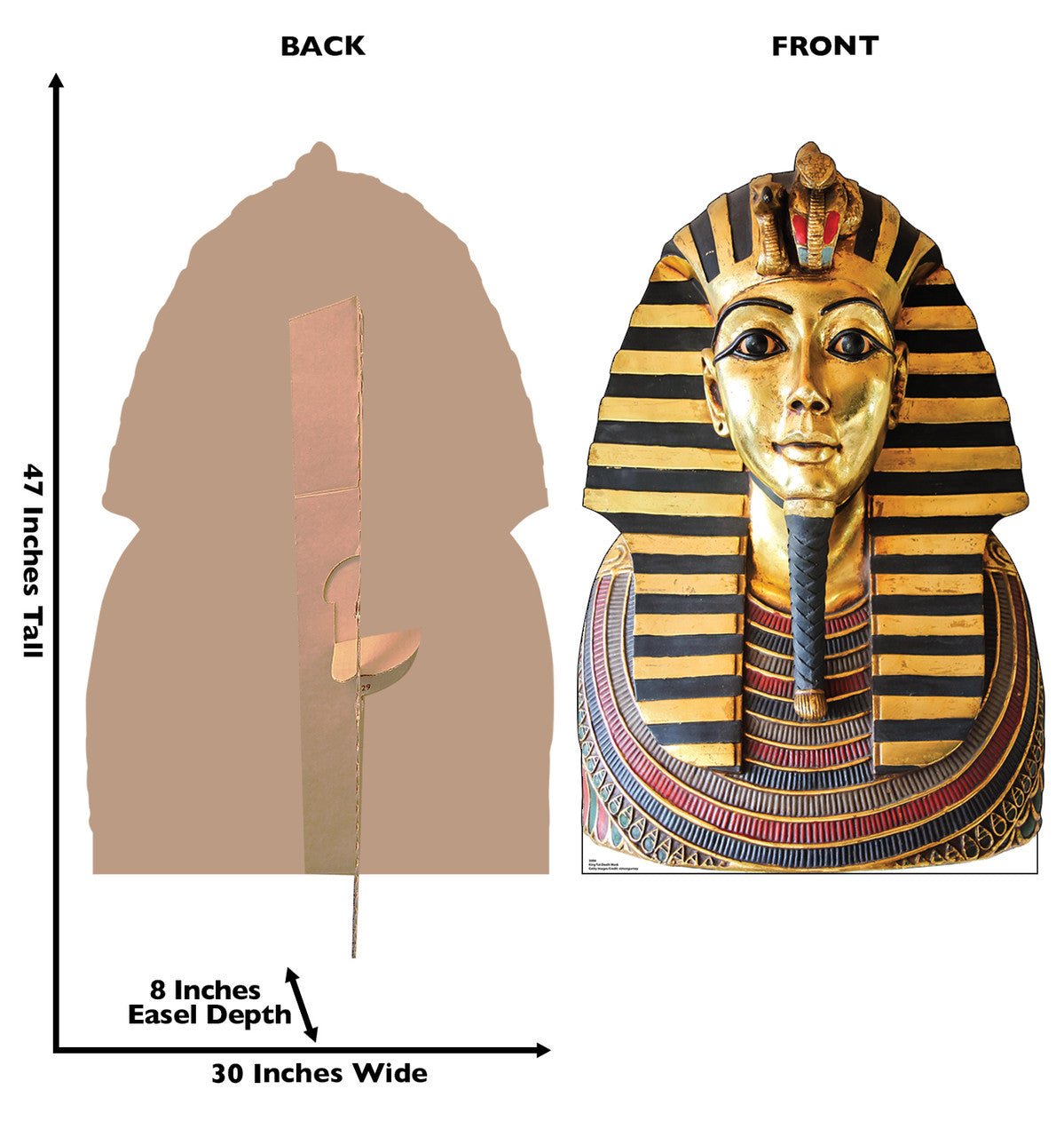 Description: This is a life size cardboard cutout of King Tut Death Mask. Easy to set up, it features a single-sided high quality print on cardboard with an easel on the back so it can stand on its own. Cardboard standups make great decor for parties, themes and photo ops and events!Β Order yours today!