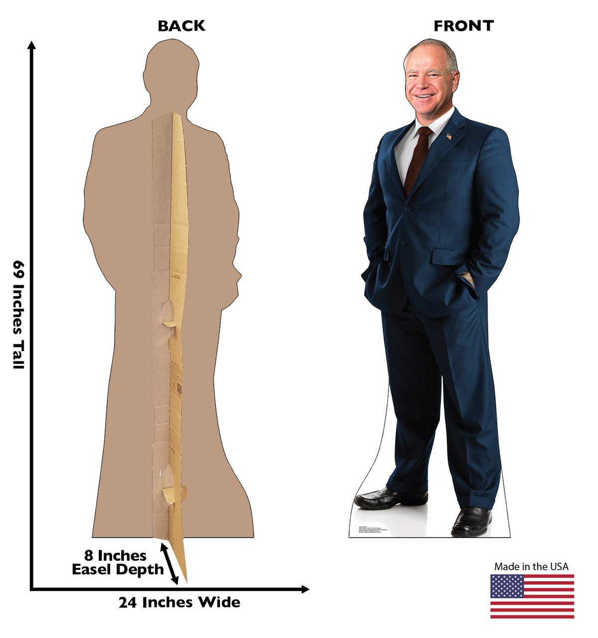 Description: This is a life-size cutout of Tim Walz, running mate for Kamala Harris 2024 Election. It features a single-sided high-quality print on cardboard with an easel on the back so it can stand on its own. Cardboard cutouts make great decor for parties, photo ops and events! Order yours today!