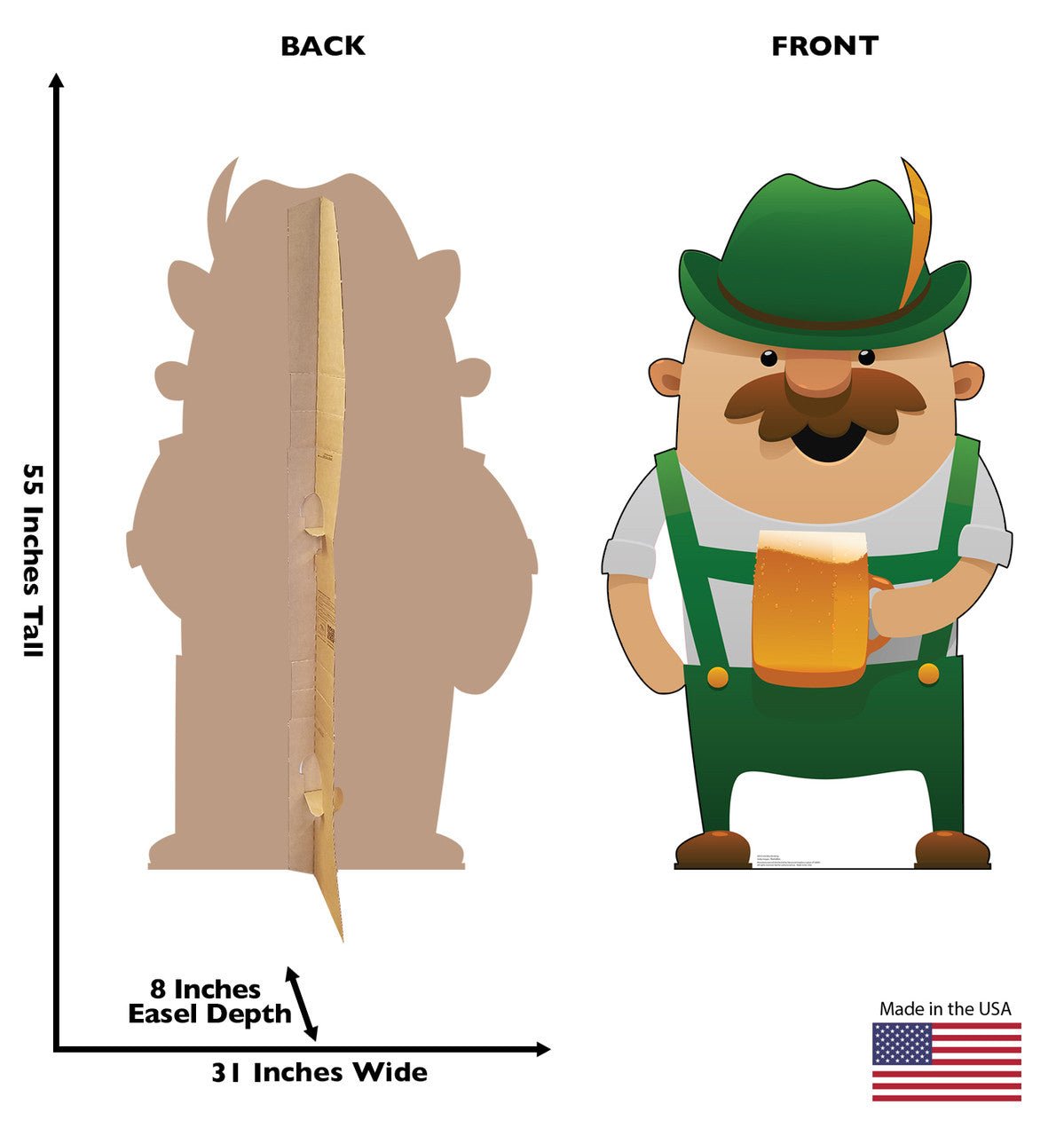 Description: This is a cardboard cutout of a cartoon Irish Man drinking. Perfect for green St. Patrick’s day celebrations, Ireland-themed events, and so much more! Easy to set up, it features a single-sided, high-quality print on cardboard with an easel on the back so that it can stand on its own. Cardboard stand-ups make great decor for parties, photo ops, and events! Order yours today!