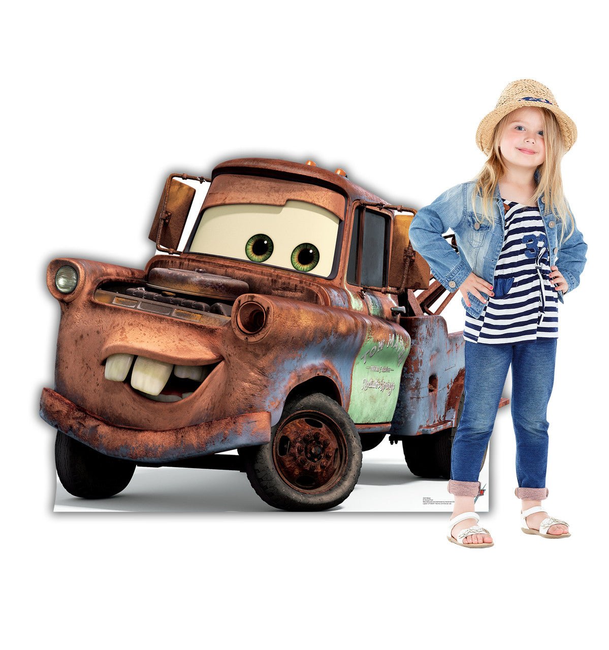 Description: This is a life-size cardboard cutout of Mater from the Disney/Pixar film Cars 3. Featuring a high-quality print on cardboard, singled-sided with an easel on the back so it can stand on its own, this cutout is great for photo ops, parties, and events. Order one for the Cars fan in your life!
