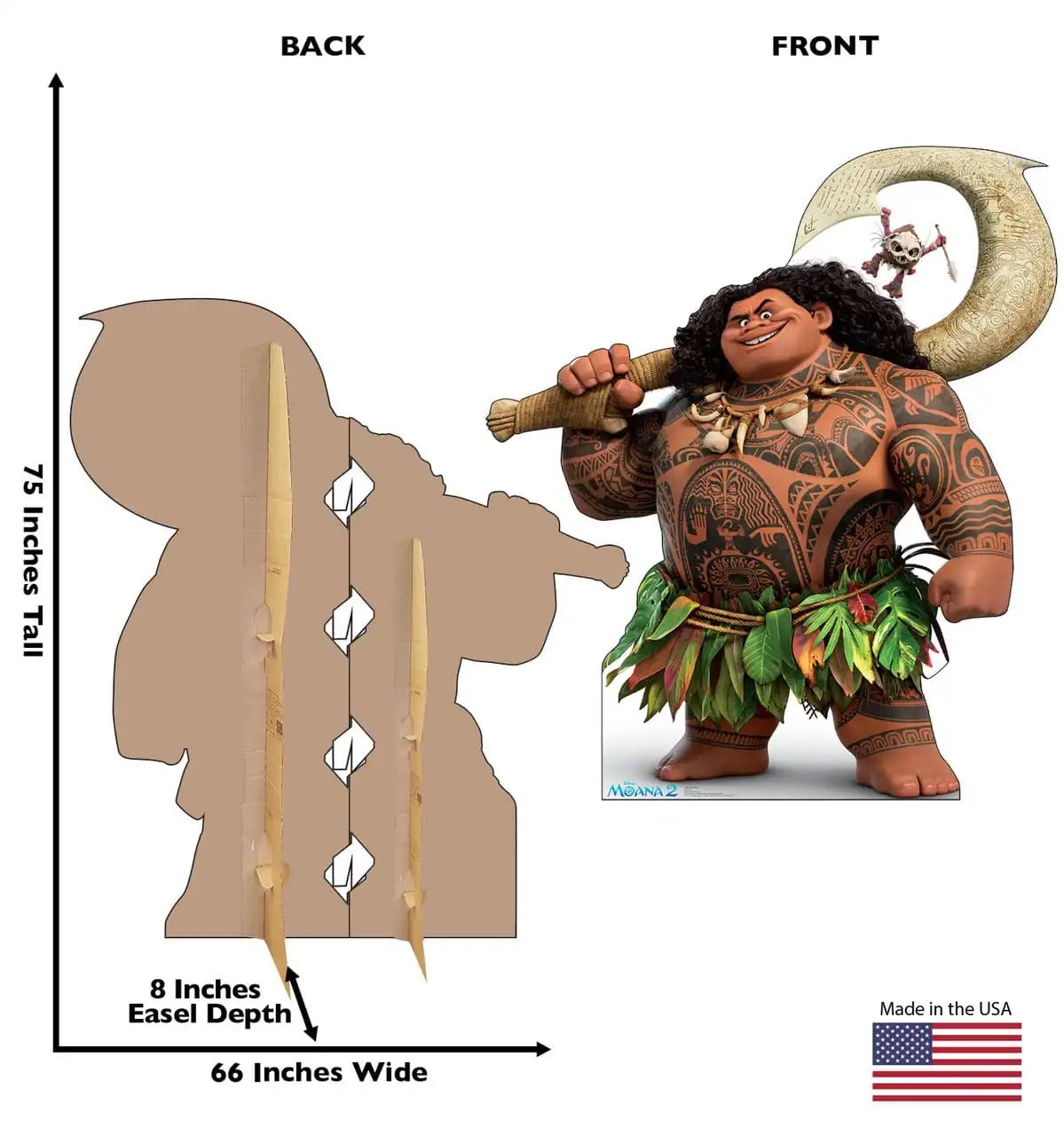 Bring the magic of Moana 2 home with this lifesize Maui & Kotu cardboard cutout! Standing 75" tall, it's the perfect Disney party decoration or photo op. Order yours today.