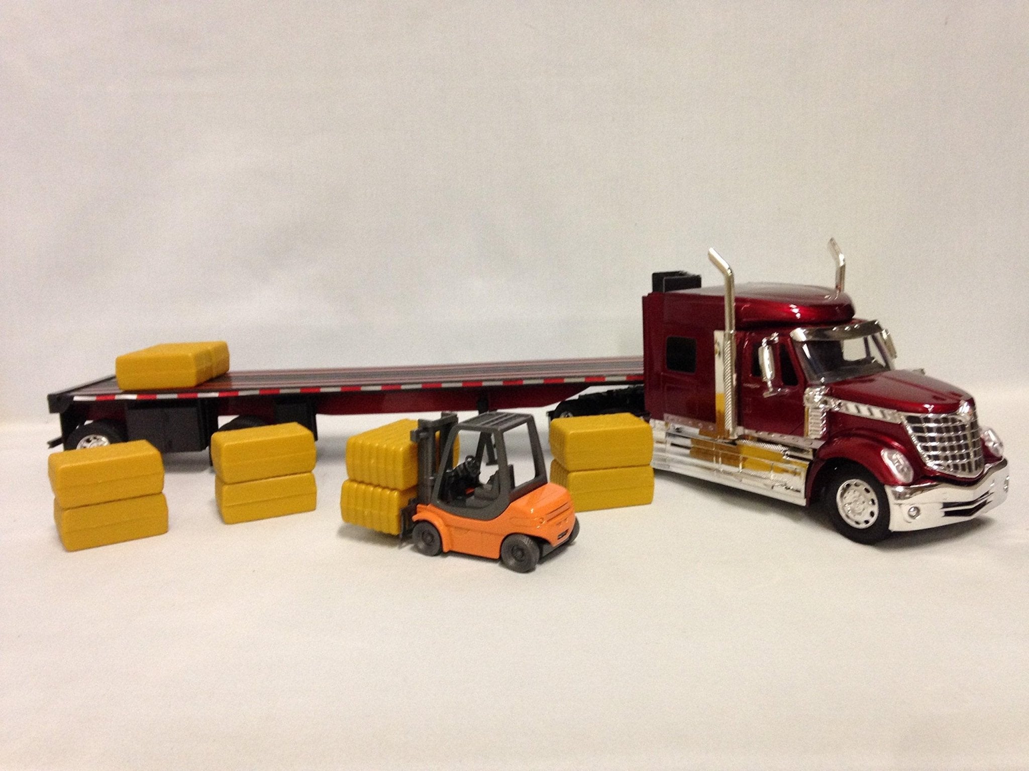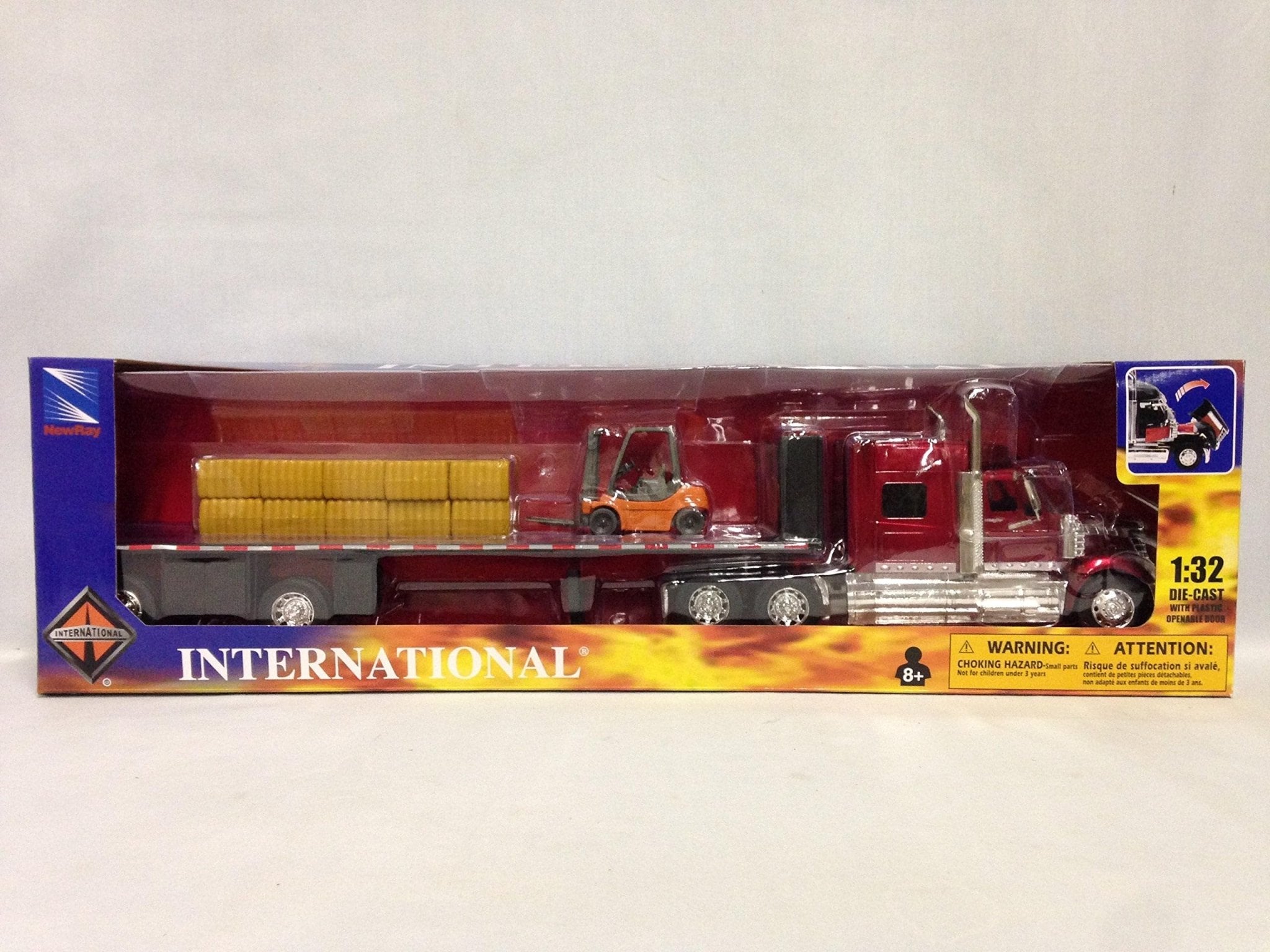 Elevate your collection with this highly detailed 1:32 scale International Lonestar Flatbed Trailer set (Item #10393), meticulously produced and officially licensed by New Ray Toys.