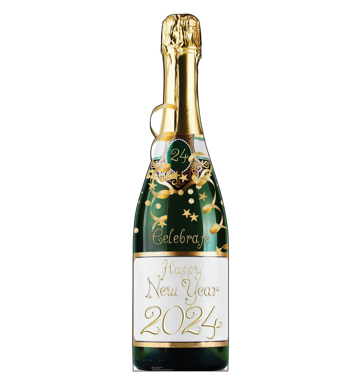 Description: This is a cardboard cutout of a champagne bottle. Perfect for New Year's Eve celebrations! Easy to set up, it features a single-sided, high-quality print on cardboard with an easel on the back so that it can stand on its own. Cardboard stand-ups make great decor for parties, photo ops, and events! Order yours today!