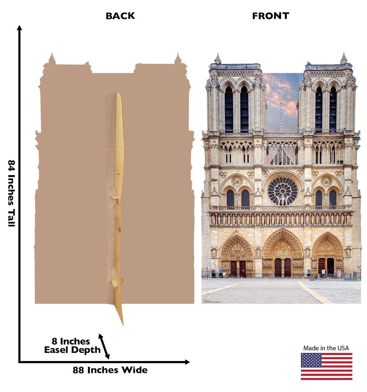 Description: This cardboard cutout of Notre Dame will be a great addition to any Paris-themed event! It features a singled-sided, high-quality print on cardboard with an easel on the back so it can stand on its own. No European-themed party is complete without this cardboard standee. Get yours today today! Size: 70" x 45
