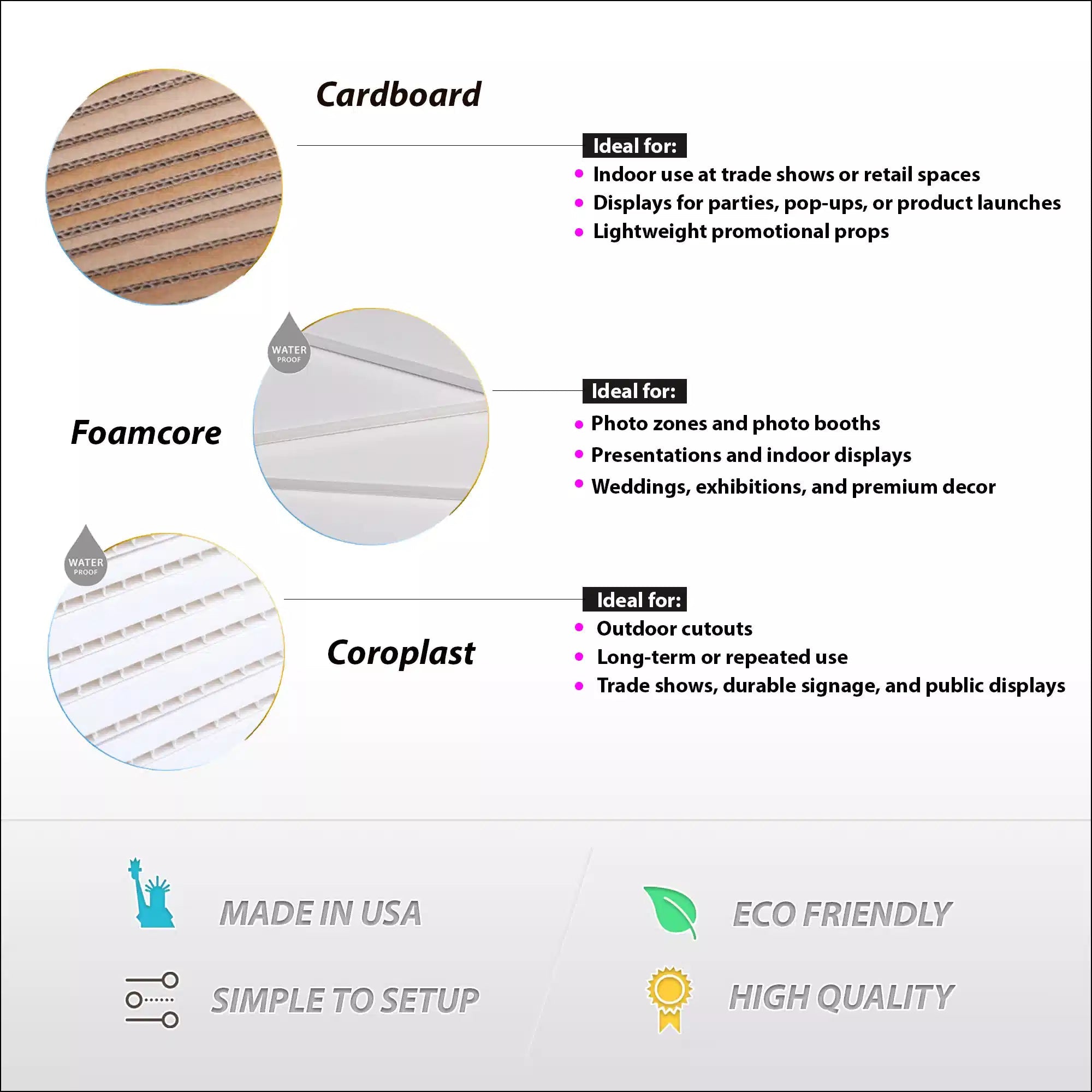 * Cardboard โ Sturdy and lightweight, ideal for most indoor events.โจ