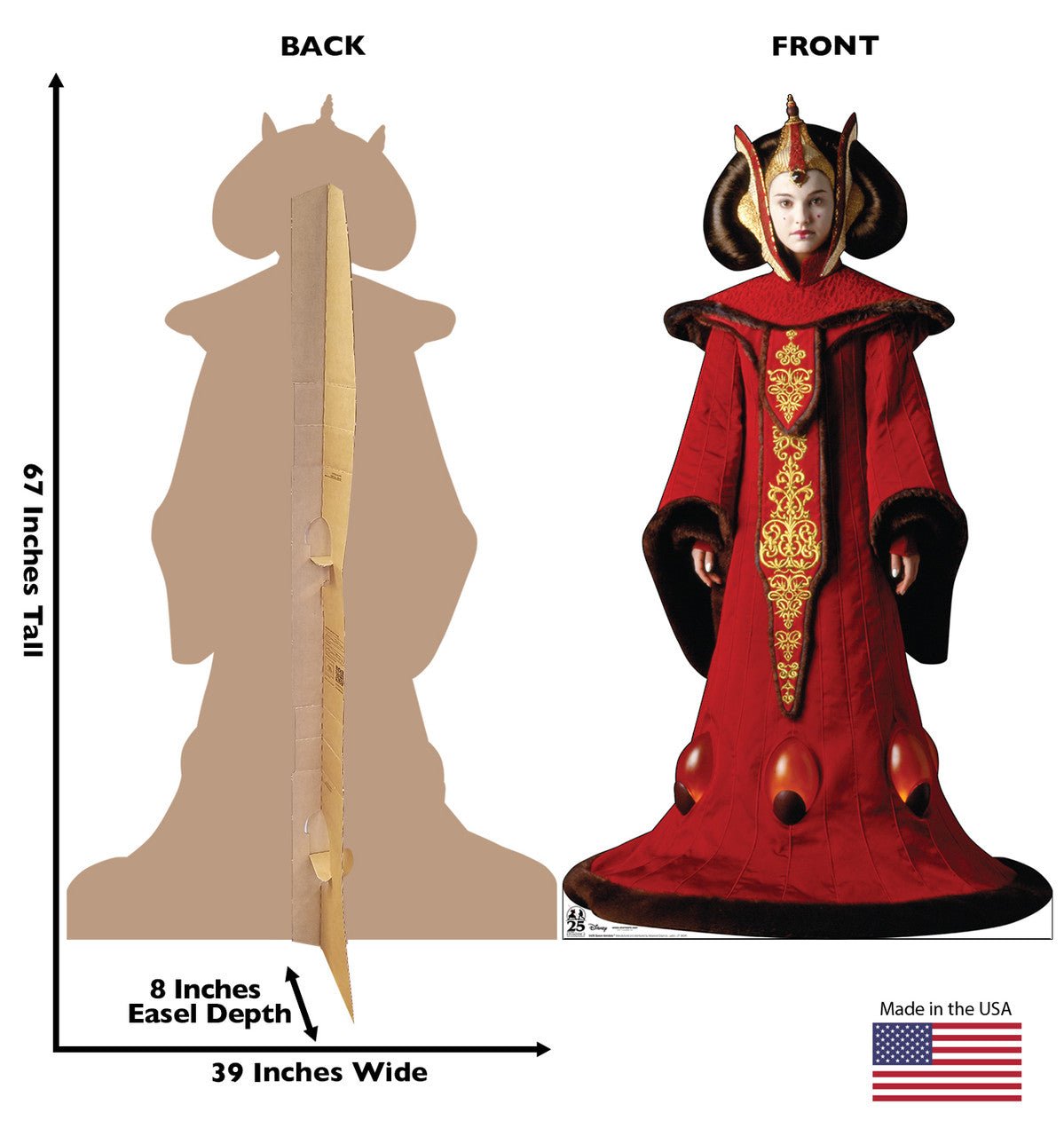 Description: This is a life size cardboard cutout of Queen Amidala™ from Star Wars The Phantom Menace 25th Anniversary. Easy to set up, it features a single-sided high-quality print on cardboard with an easel on the back so it can stand on its own. Cardboard standups make great decor for parties, photo ops and events! Order yours today!