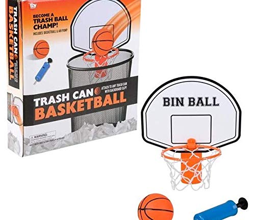 • 8.5" Trash Can Basketball Set Packaged in a colorful box Set includes: back board, ball, mini air pump Sold by the set Ages 3+