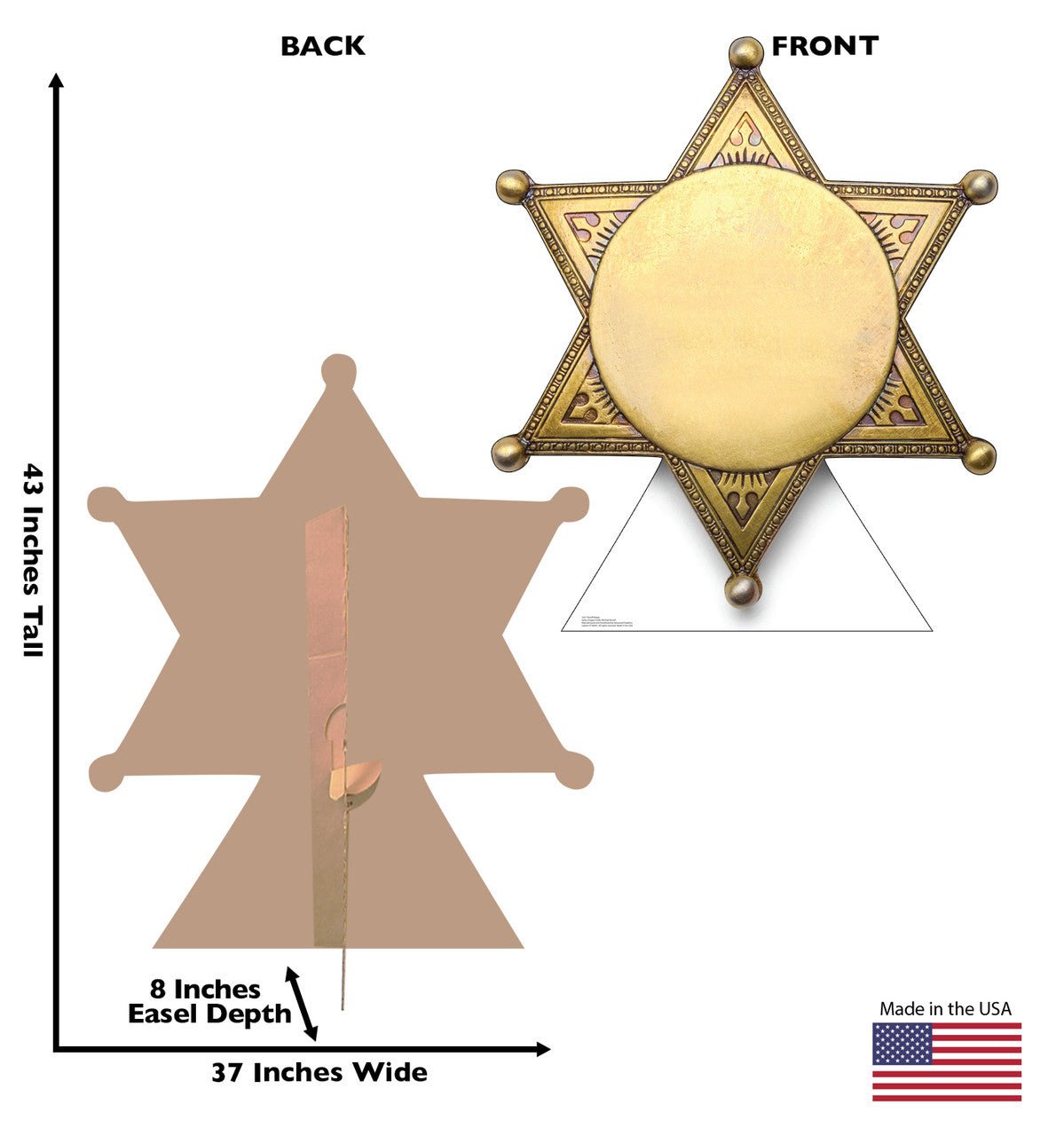 Description: This is a life size cardboard cutout of a Sheriff Badge. Easy to set up, it features a single-sided high quality print on cardboard with an easel on the back so it can stand on its own. Cardboard standups make great decor for parties, photo ops and events!Β Order yours today!